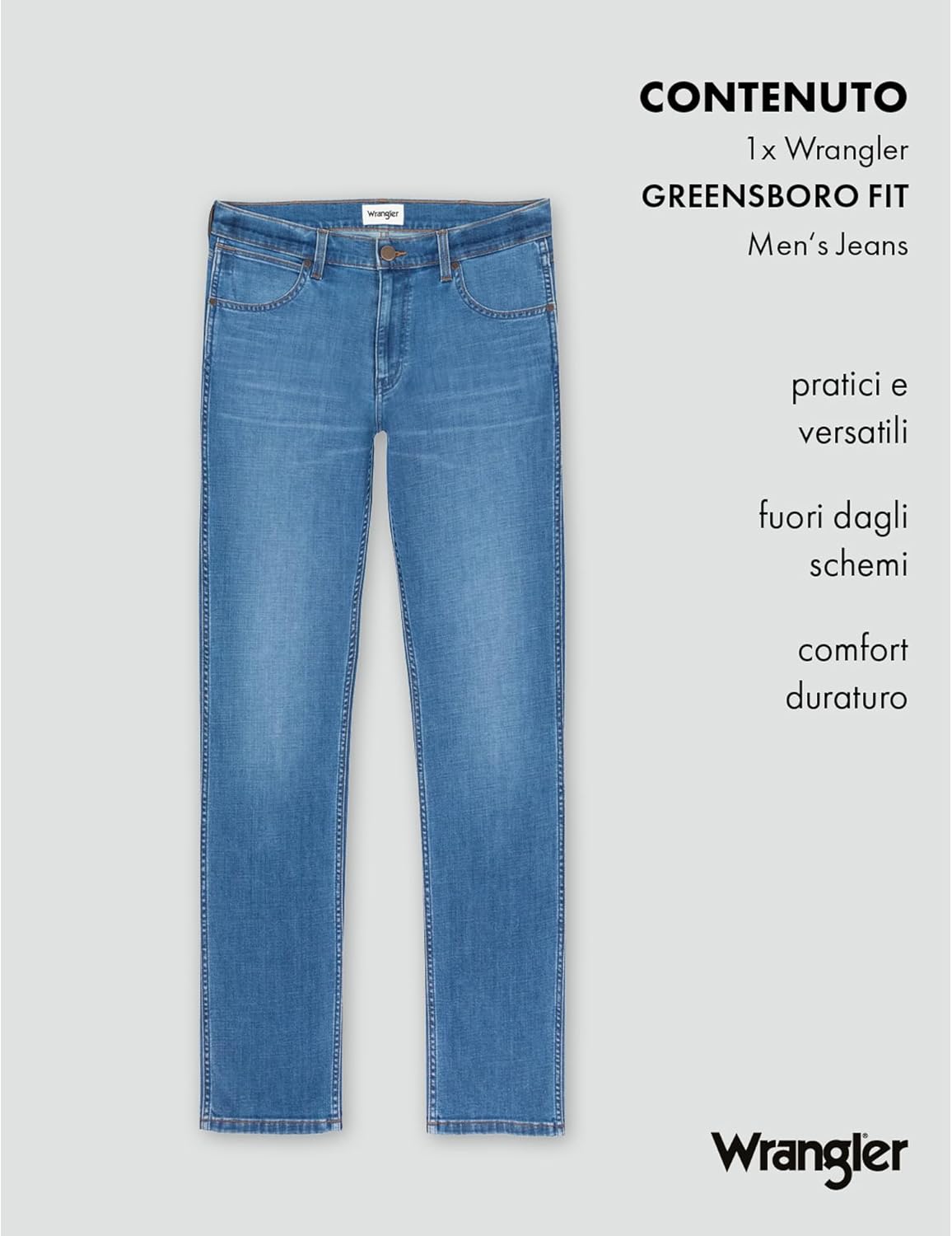 Il modello Greensboro si distingue per la morbidezza del tessuto e per la vestibilità confortevole. La tonalità dona un aspetto rilassato e versatile. Perfetti per un uso quotidiano, offrono un equilibrio tra stile casual e comfort.